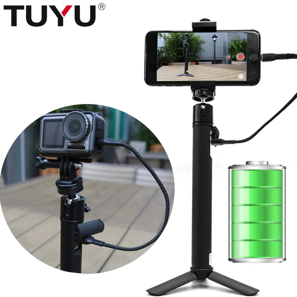BEST QUALITY TUYU 2 in1 Handheld 5200mah Camera Battery Power Selfie Stick for DJI OSMO Action GoPro Hero7 6 5 4
