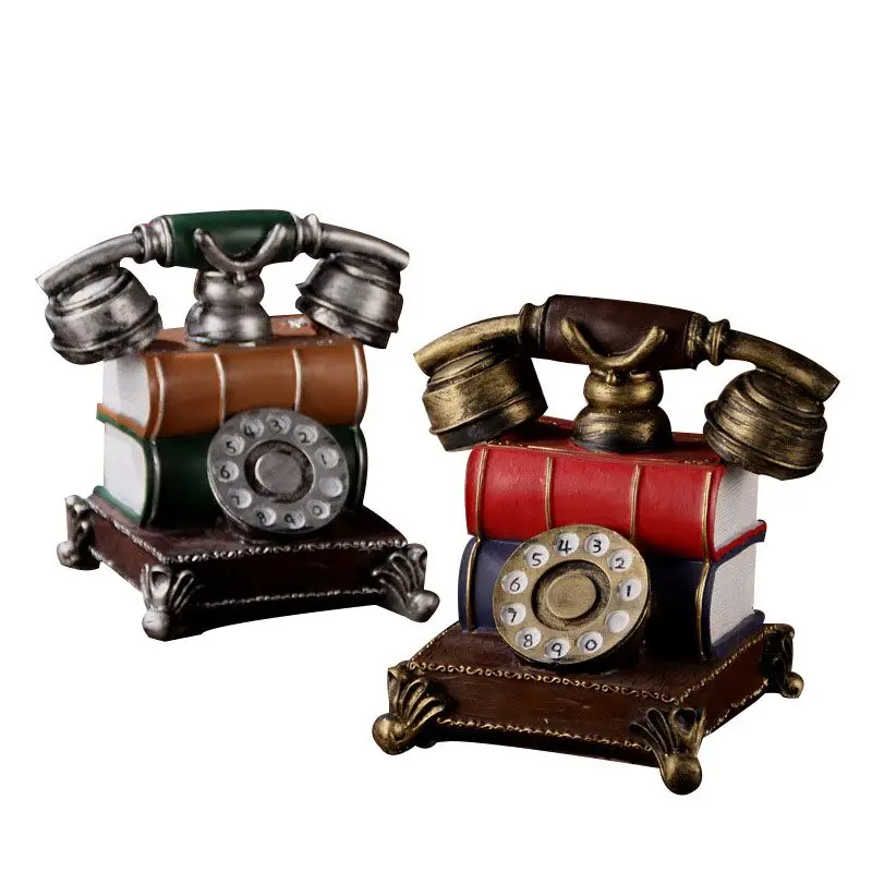 Home Decor Vintage Book Phone Piggy Bank Ornaments Retro Furniture Phone Figurine Home Decoration A