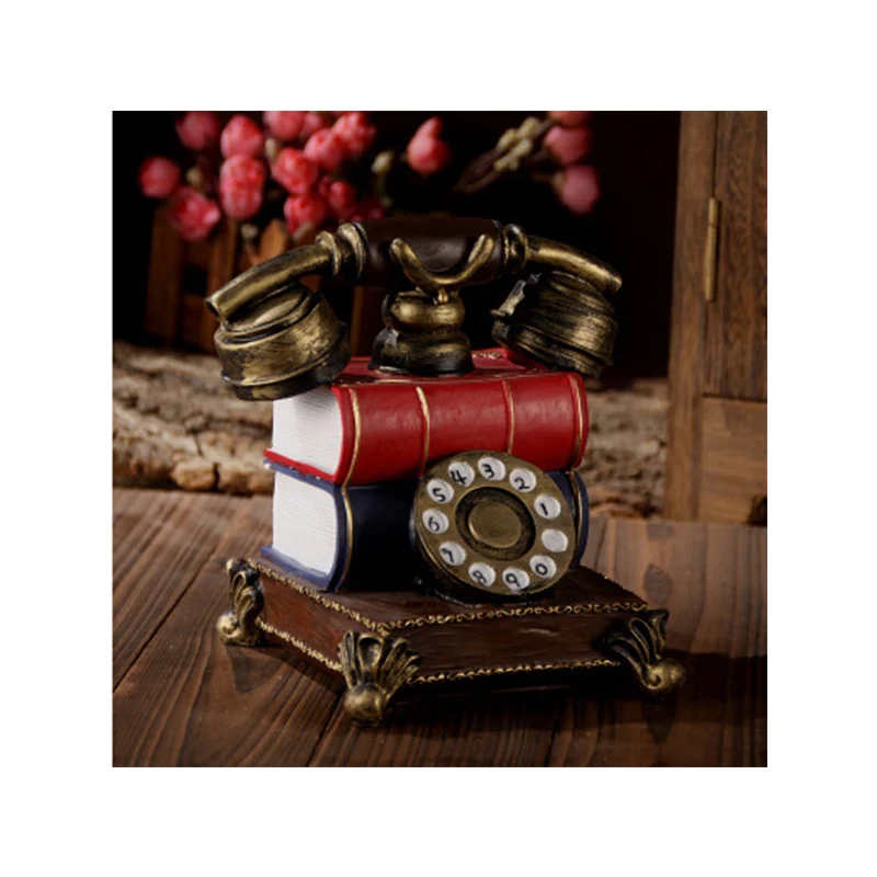 BEST Home Decor Vintage Book Phone Piggy Bank Ornaments Retro Furniture Phone Figurine Home Decoration A