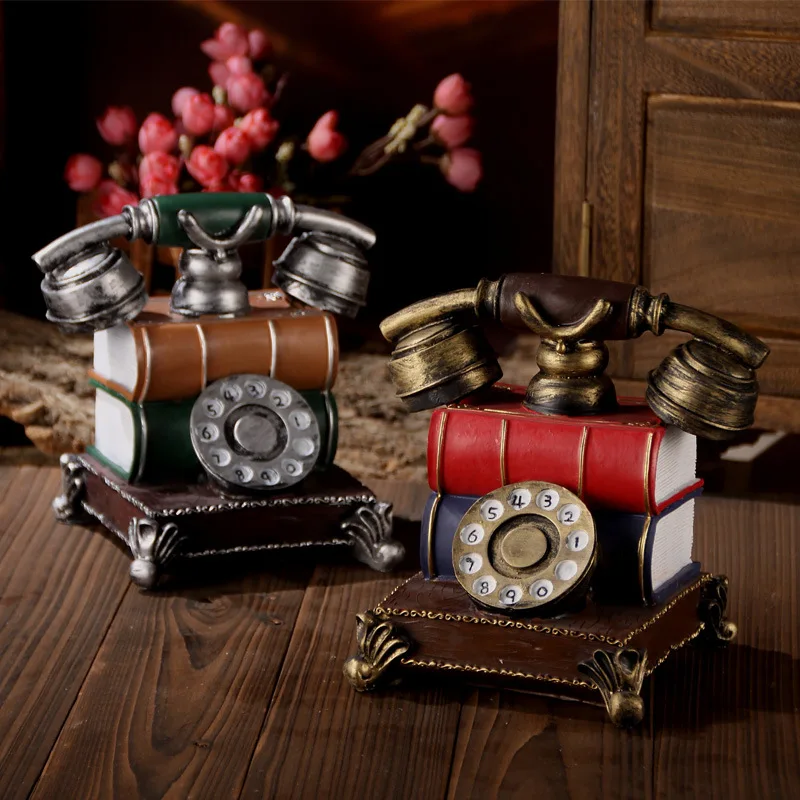 REVIEW TOP SELLER Home Decor Vintage Book Phone Piggy Bank Ornaments Retro Furniture Phone Figurine Home Decoration A